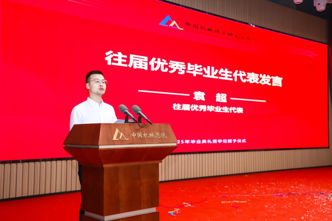 往屆優(yōu)秀畢業(yè)生代表袁超分享留院工作以來的科研經歷與成長,鼓勵學弟學妹們“以‘敢為人先’為刃,在工業(yè)母機、工業(yè)軟件的賽道上破浪前行;以‘開拓創(chuàng)新’為炬,為中國制造業(yè)的高質量發(fā)展點燃燎原星火?!?/p>