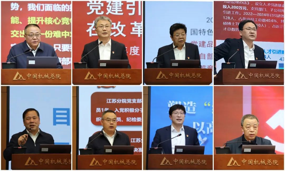 中機一院、機電所、中機認(rèn)檢、基礎(chǔ)院、輕量化院、江蘇分院、寧波機床院、云南院等8家單位黨組織書記現(xiàn)場述職。王德成結(jié)合黨組織書記現(xiàn)場述職和日常工作情況,逐一提問和點評,肯定了亮點成績、指出了存在問題、提出了意見建議。集團黨委委員分別進行簡要點評。
