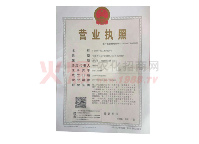 廣西恒豐化工有限公司(原廣西民族科學(xué)技術(shù)應(yīng)用研究所化工實驗廠)坐落于廣西,是一家集科研、生產(chǎn)、銷售為一體的農(nóng)化企業(yè),公司以“專注農(nóng)化,以農(nóng)為需”為發(fā)展宗旨,希望通過先進(jìn)的科研水平和逐漸成熟的管理團(tuán)隊,為廣大農(nóng)村地區(qū)提供質(zhì)量、價格實惠的農(nóng)化產(chǎn)品,立志打造成國內(nèi)的農(nóng)化生產(chǎn)企業(yè)。