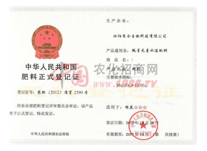 河南昆侖生物科技有限公司是國家農肥定點生產企業(yè),是集研發(fā)、生產、銷售、服務于一體的高新技術企業(yè)。企業(yè)主要產品為植物生長調節(jié)劑、微生物菌肥、微量元素葉面肥、沖施肥等。公司1995年建廠,2000年改制為股份制企業(yè),2009年被農業(yè)部授予“農肥定點生產企業(yè)”,2017年公司再次更名為“河南昆侖生物科技有限公司”,相繼獲得微量元素水溶肥、含腐殖酸水溶肥、微生物菌劑等十余個農肥登記證。公司先后在工商局注冊了挑戰(zhàn)王、愛普達、斤半棵、昆侖風、舞谷風、光動力等一系列產品商標。迄今為止公司成立23年,營銷中心、研發(fā)中心坐落于鄭州,并有鄭州、泌陽兩處實體工廠,營銷中心包含6個業(yè)務團隊。