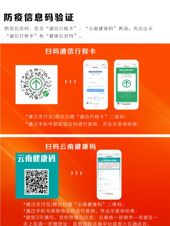 防疫信息碼:包含“通信行程卡”、“ 云南健康碼”兩項。先后出示“通信行程卡”和“健康信息碼”。